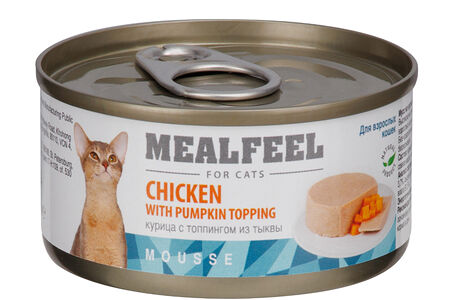 Влажный корм Mealfeel (консервы) для кошек, мусс из курицы с топпингом из тыквы, 85 гр. доставка