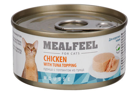 Влажный корм Mealfeel (консервы) для кошек, мусс из курицы с топпингом из тунца, 85 гр. доставка