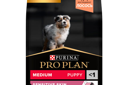 Сухой корм PRO PLAN® для щенков средних пород с чувствительной кожей, с высоким содержанием лосося 3 кг доставка