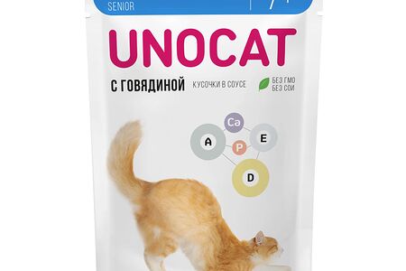 Влажный корм UnoCat для кошек старше 7 лет нежные кусочки с говядиной в соусе доставка