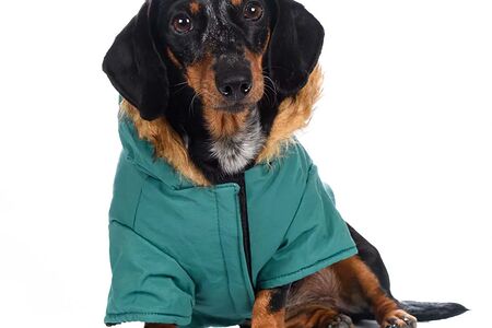 Куртка приталенная с меховым капюшоном для собак XS зеленый (унисекс) доставка