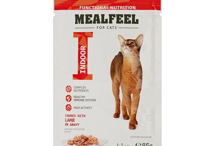 консервированный корм Mealfeel для взрослых кошек ягненок в соусе с кусочками куриного филе доставка