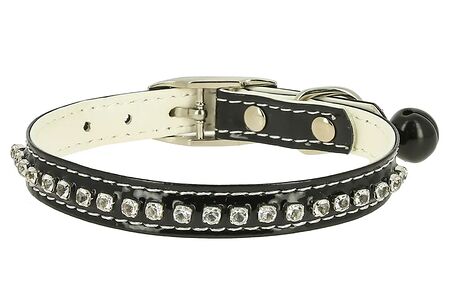 Каскад ошейник "Синтетик" двойной прошитый для кошки со стразами и бубенчиком Черный доставка
