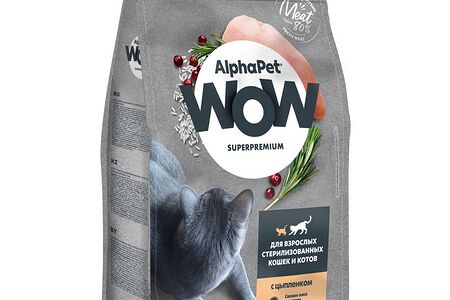 AlphaPet WOW Superpremium сухой корм для взрослых стерилизованных кошек и котов Цыпленок доставка