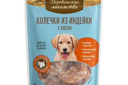 Лакомство для щенков Деревенские лакомства Колечки из индейки с рисом доставка