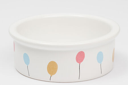 Миска керамическая для кошек и собак, 12,5х4,5 см, белая с рисунком собаки c шарами доставка