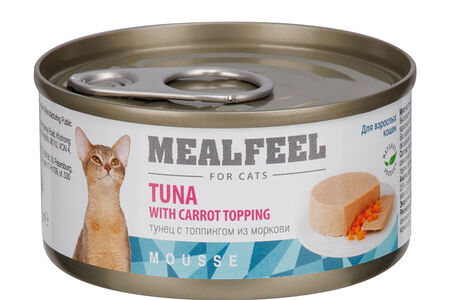 Влажный корм Mealfeel (консервы) для кошек, мусс из тунца с топпингом из моркови, 85 гр. доставка