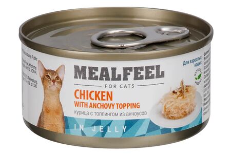Влажный корм Mealfeel (консервы) для кошек, цыпленок с топпингом из анчоусов в желе, 85 гр. доставка