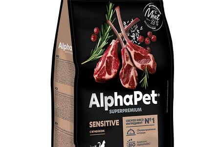 Сухой корм AlphaPet Superpremium для взрослых кошек и котов с чувствительным пищеварением, Ягненок доставка