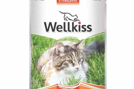 Adult влажный корм Wellkiss для взрослых кошек, с ягненком и говядиной в соусе доставка