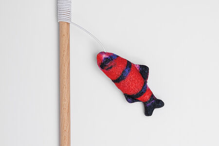 Игрушка-дразнилка с кошачьей мятой, валерианой и погремушкой для кошек Барбус бордо, 11х3,5х1,7 см, удочка 40 см доставка