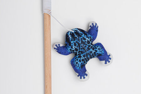 Игрушка-дразнилка с кошачьей мятой, валерианой и погремушкой для кошек Лягушка синяя, 11х3,5х1,7 см, удочка 40 см доставка