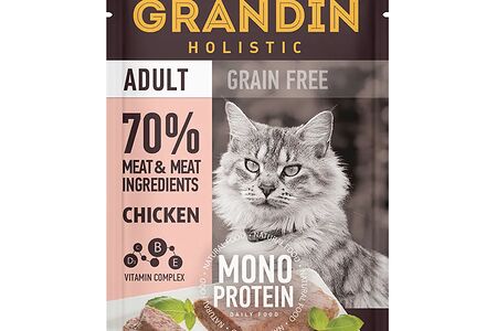 Adult Grain free Monoprotein Влажный корм Grandin (пауч) для взрослых кошек, патэ из нежного мяса курицы в желе, 85 гр. доставка
