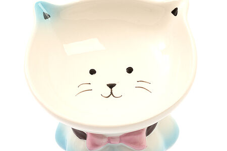 Миска для кошек на ножке с ушками голубая 13,5см доставка