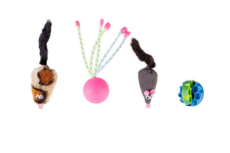 Набор игрушек для кошек Микс: 2 мячика и 2 мышки доставка