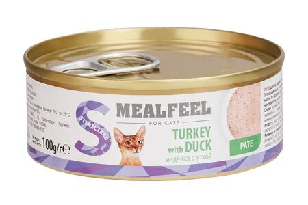 Влажный корм Mealfeel (консервы) для стерилизованных кошек, паштет из индейки с уткой, 100 гр. доставка