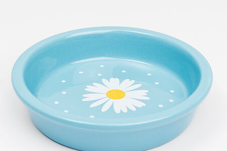 Миска керамическая для кошек, 14x3,2 см, синяя с ромашкой доставка