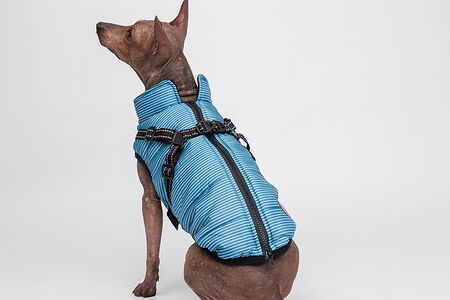 Попона теплая со шлейкой для собак, L, синяя доставка