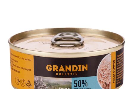 Holistic Консервированный корм Grandin для взрослых кошек индейка в желе, 100г доставка