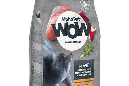 Сухой корм AlphaPet WOW Superpremium для взрослых стерилизованных кошек и котов Индейка и потрошки доставка