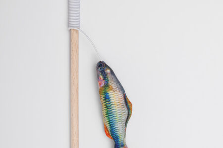 Игрушка-дразнилка с кошачьей мятой, валерианой и погремушкой для кошек Рыба радужная, 11х3,5х1,8 см, удочка 40 см доставка
