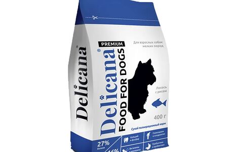 Корм DELICANA для собак мелких пород лосось с рисом доставка