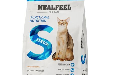 Корм Mealfeel сухой для кошек старше 7 лет, с курицей и индейкой, 400 гр. доставка