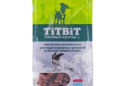 Подушечки хрустящие Titbit Лакомый кусочек со вкусом говядины и сыра доставка