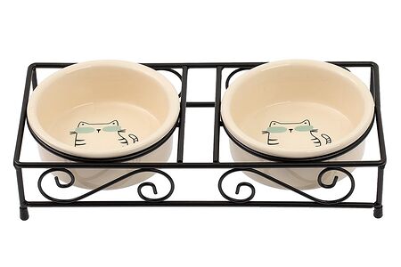 Миска двойная с киской 12,5см белая керамика доставка