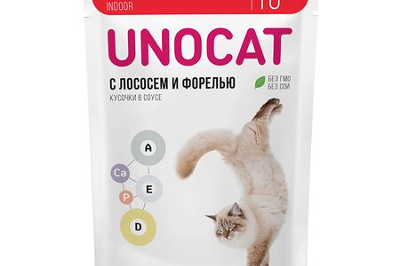 Влажный корм UnoCat для домашних кошек нежные кусочки с лососем и форелью в соусе доставка