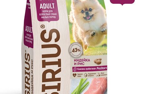 Sirius Sirius для взрослых собак малых пород Индейка и рис 2 кг доставка