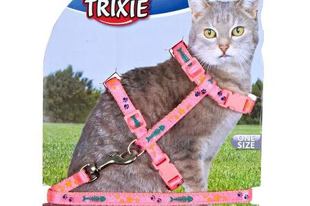 Шлейка с поводком для кошки с рисунком, нейлон, 22–36 см/10 мм, длина 1.2 м доставка