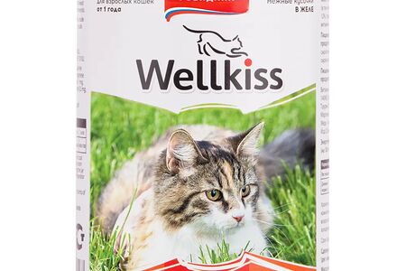 Adult консервированный корм Wellkiss для взрослых кошек, с говядиной в желе доставка