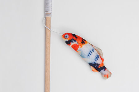 Игрушка-дразнилка с кошачьей мятой, валерианой и погремушкой для кошек Карп кои, 11х3,5х1,7 см, удочка 40 см доставка