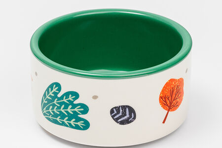 Миска керамическая для грызунов Листочки, 10х5,5 см, бело-зеленая доставка