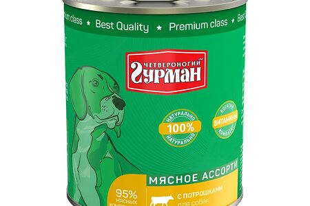 Корм консервированный для щенков Четвероногий гурман Мясное ассорти с потрошками 340г доставка
