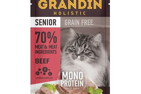 Senior Grain free Monoprotein Влажный корм Grandin (пауч) для пожилых кошек, патэ из нежного мяса говядины в желе, 85 гр. доставка