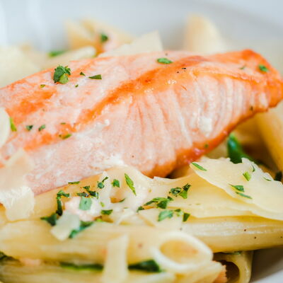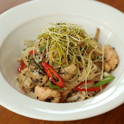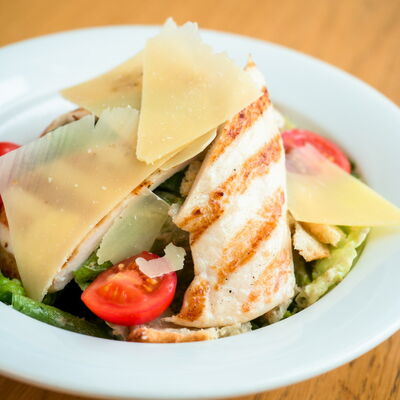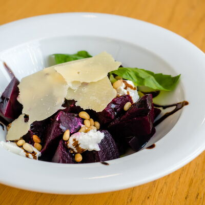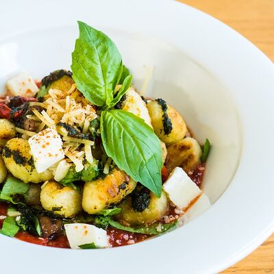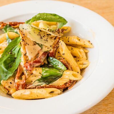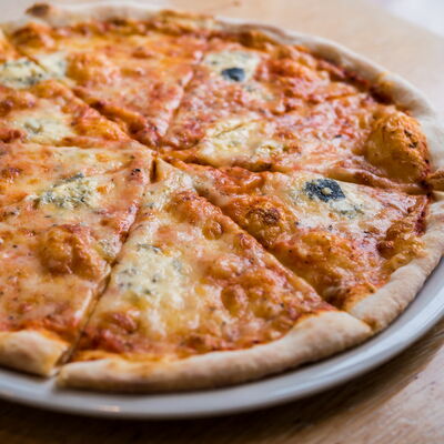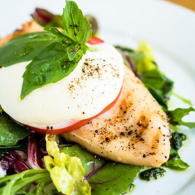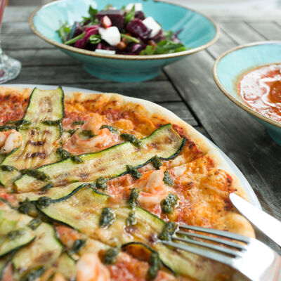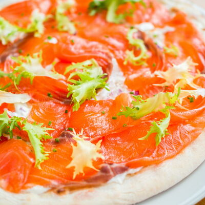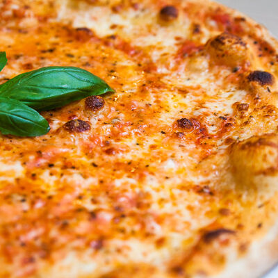 Пицца с моцареллой, листьями рукколы и соусом песто доставка