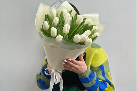 Букет из белых тюльпанов в размере М. Букет 1076. доставка