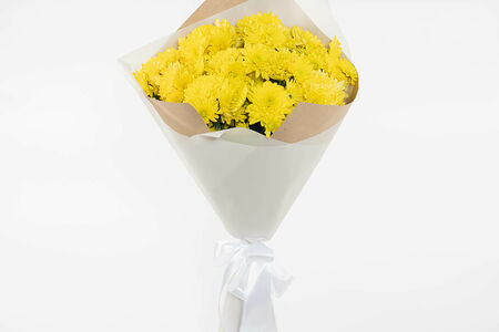 9 желтых хризантем в подарочной упаковке доставка