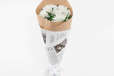 5 пышных белых хризантем доставка