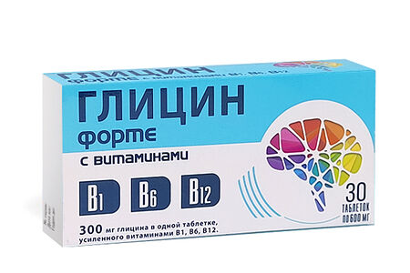 Глицин Форте 30 шт таблетки с витаминами В1 В6 В12 доставка