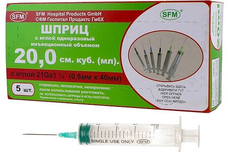 Шприц SFM 5 шт 20 мл 21G 0.8 х 40 мм доставка
