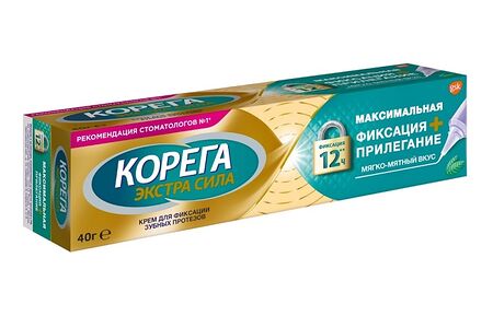Корега Максимальная фиксация+прилегание крем для фиксации зубных протезов 40г, мягко-мятный доставка