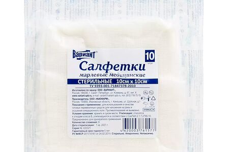 Салфетка марлевая Вариант 10 шт 10 см х 10 см стерильная восьмислойная доставка
