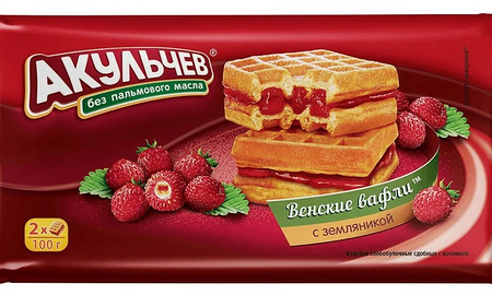 Вафли Акульчев Венские мягкие с земляникой доставка