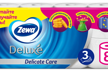 Туалетная бумага Zewa Deluxe Белая, 3 слоя, 8 рулонов доставка