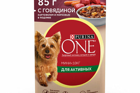 Корм для собак purina one® мини для активных, с говядиной, картофелем и морковью, в подливе, влажный доставка