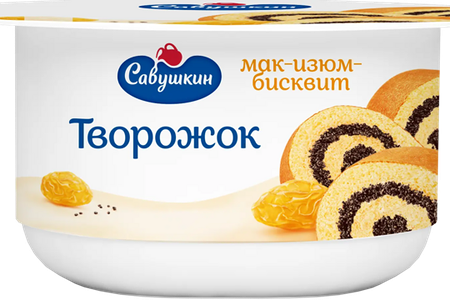 Паста творожная Савушкин продукт со вкусом мака, изюма и бисквита/марракеша 3,5% доставка