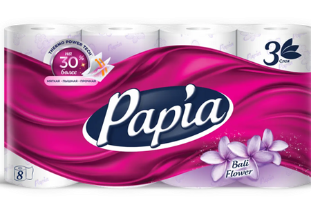 Бумага туалетная Papia Балийский Цветок 3 слоя, 8 рулонов доставка